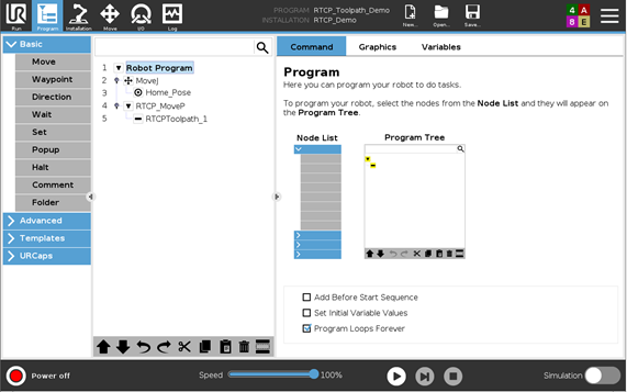 4. 在 Remote TCP & Toolpath URCap 中选择 Remote TCP Toolpath Moves 并通过嵌入式说明了解工作流程。