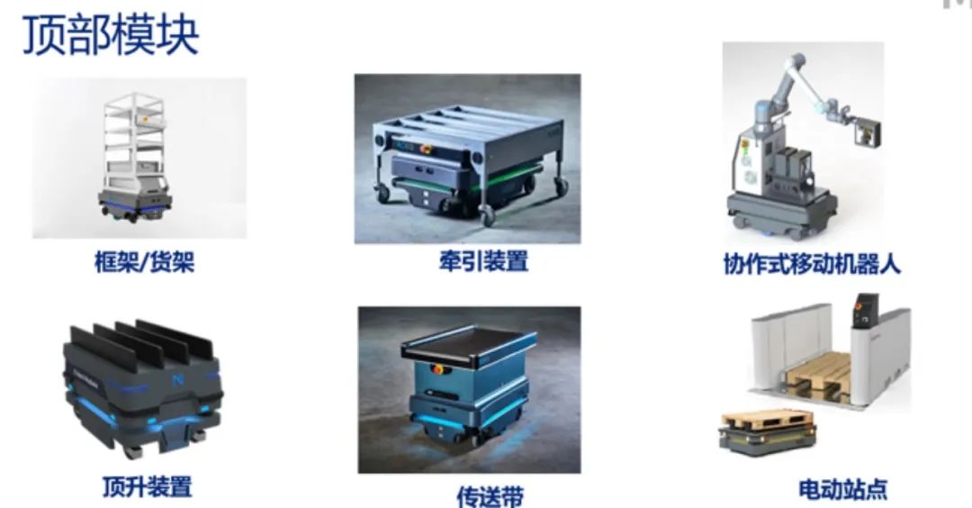 此外,针对工业遍布着非标化场景这一情况,MiR另辟蹊径,推出“MiRGo”平台,对底盘进行标准化设计的同时把接口开放给合作伙伴,合作伙伴再基于这些接口做二次开发,标准化底盘也就成为了合作伙伴整体打包给客户的集成方案中的“零部件”,而顶部模块包括货架、辊筒传送机、协作机器人手臂等。